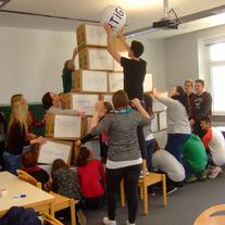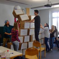 - Kartons dienen als Bausteine
