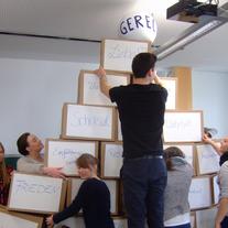 - Oder es wird gefragt, welche Begriffe in unserer Gesellschaft umgesetzt werden. Wenn sie nicht umgesetzt werden, kann ebenfalls ein Stein entfernt bzw. versetzt werden. Und wieder kommt das Gebäude aus dem Gleichgewicht und bricht gegebenen Falls zusammen