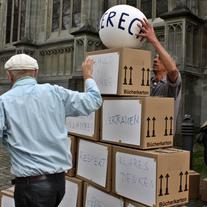 - Das “Publikum” setzt die “Steine” zu einem Fundament für die Gerechtigkeit zusammen